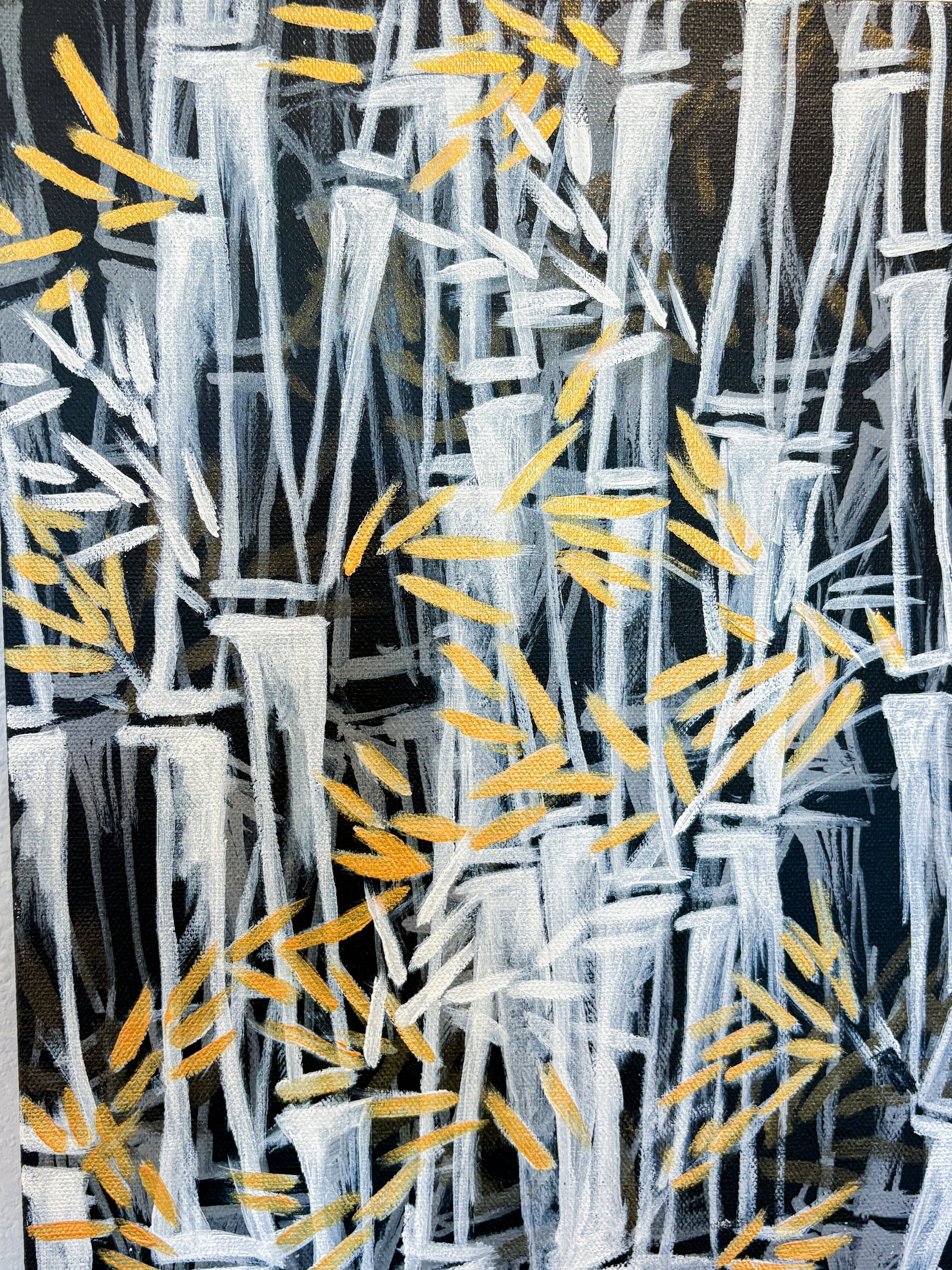 "Golden Bamboo Leaves” 20in x 24in Acrylic on Canvas